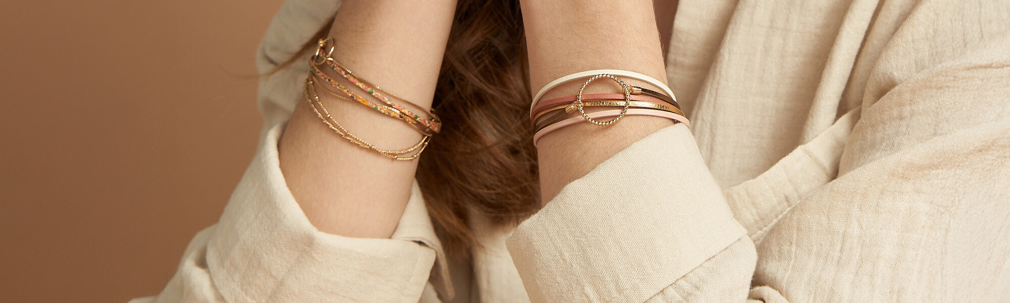 La marque est particulièrement reconnue pour ses bracelets en cuir, véritables pièces emblématiques de son univers, mais propose également des boucles d’oreilles et colliers dans le même esprit raffiné.