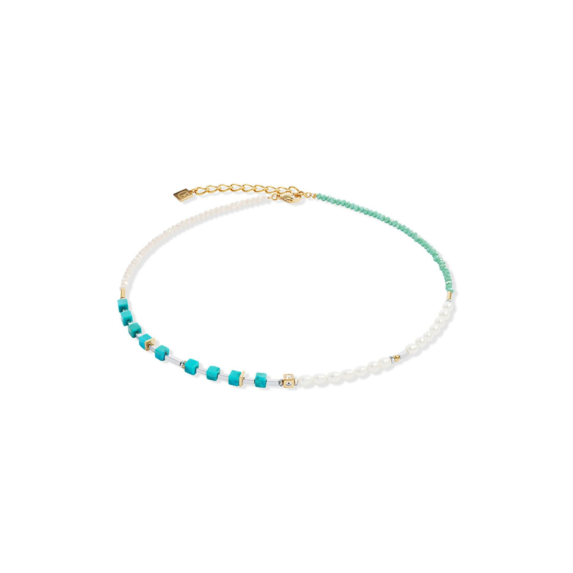 Collier Coeur de Lion Princess Fusion Pearls en acier doré, perle d'eau douce, turquoise et verre