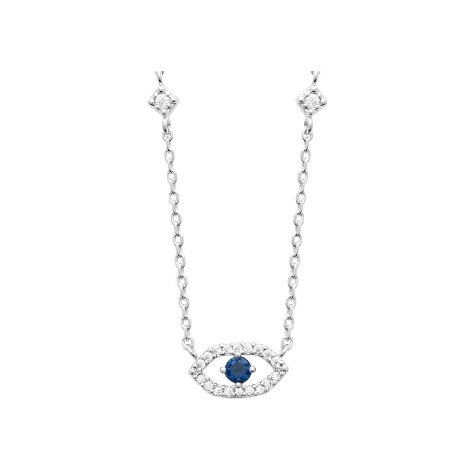 Collier en argent rhodié, oxyde de zirconium et pierre de couleur